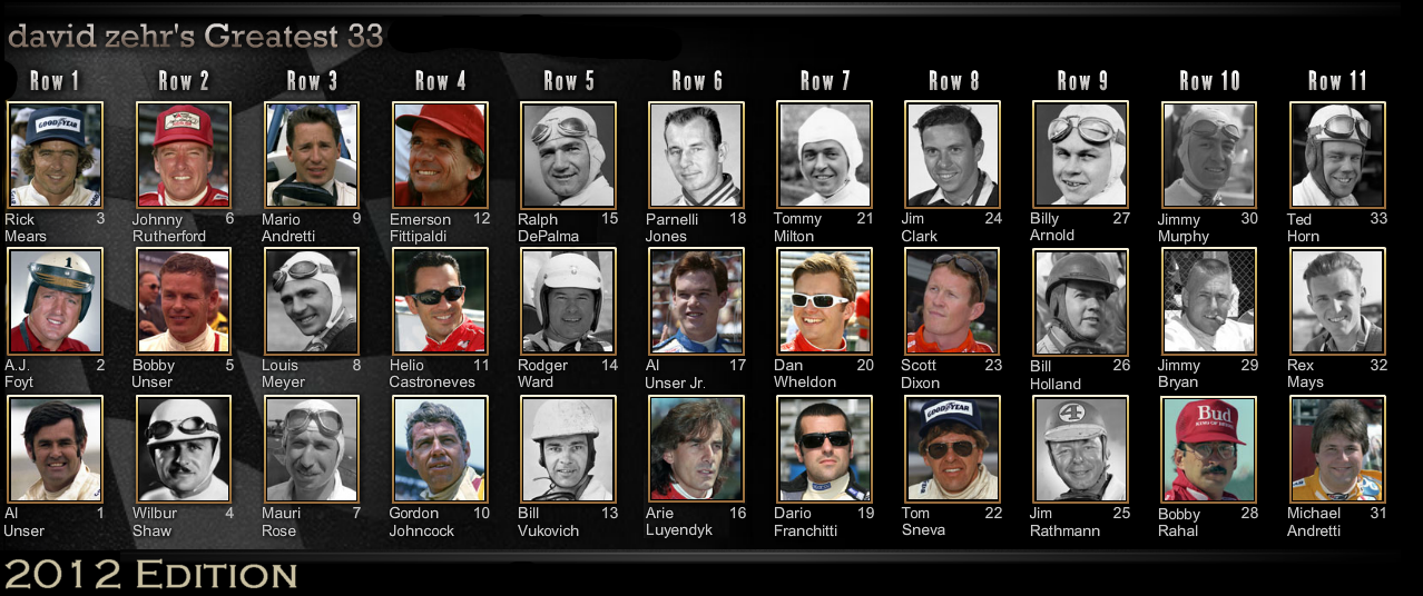 Go ahead and set your Indy 500 nerdery alarm to ring in 365 days as I plan to be right back here (Mayan calendar be damned) updating prior to the 2013 Indianapolis 500 Mile Race. I’d be interested in your thoughts on your own Greatest 33 and if you’ve thought about changing it as well…