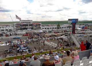 Its deviously different 3 corners have confounded drivers and engineers since inception which is why it is a favorite of mine. Long before the 1.5 mile, high-banked and dreary cookie-cutter ovals featured prominently on the US racing landscape, track owners seemed to want to use their imaginations to create a unique racing experience for teams, drivers, and fans alike. Pocono is a great example of this. The region around the track property is hilly and wooded and somewhat remote from cities which lends a bit of serenity to an otherwise tempestuous locale. Its chosen setting also makes track access by car less than ideal, mass-transit non-existent, and most hotel inventories over 20 miles away but any fan worth their salt will gladly realize the extra hour either arriving earlier or waiting to enter the property is well-worth it when the green flag flies.  Having never seen any previous iterations, I found the permanent fan amenitites modest, welcoming, and well-thought out.  The extra personnel from cheery ticket-takers to the bathroom attendants that keep the facilities tidy and well-stocked help to ensure the fan feels well-regarded by the track. The premium Paddock Club seating is the central (seen on TV as the black and white checkered color) of the Main (and only) Grandstand in which each ticketed seat is a plastic, molded chair seat and back which makes a multiple hour event more tolerable than the remaining aluminum bleachers.